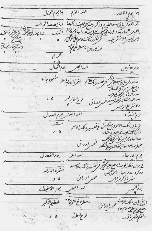 ... و کتاب علی راسه مکتوب باسمک فیه کل الازلیه والدائرة الابدیة و خط الالهیة و خط آخر من الله لسمیی الاعلی (238) مع العلی بلغه الی الثمرة البهیة و ... ... کتابی که روی آن نام تو نوشته شده هیکل ازلیه و دائره ابدیه در آن است و خط دیگری از نقطه اولی برای همنام بزرگوار من حسینعلی (238) است آنرا به ثمره بهیه برسان ...